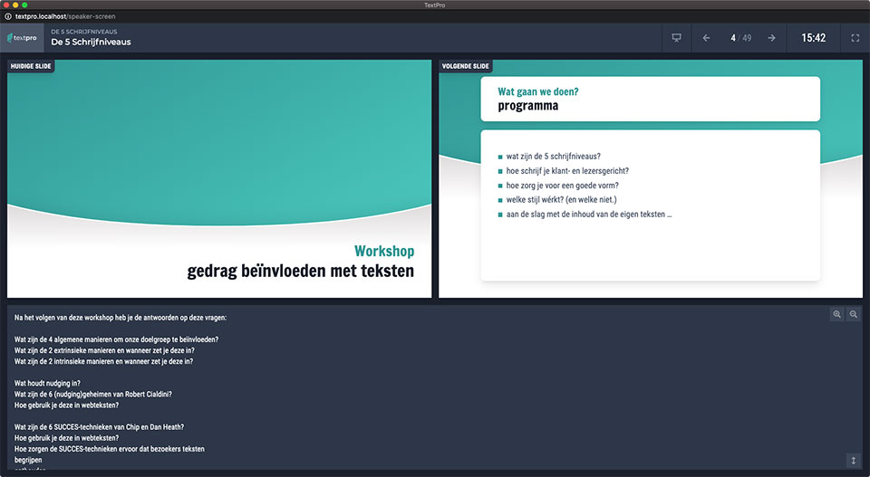 De professional krijgt een eigen TextPro-account en logt in op het beveiligde platform. Daarna kan de TextPro-trainer direct aan de slag voor de interne of externe opdrachtgever.