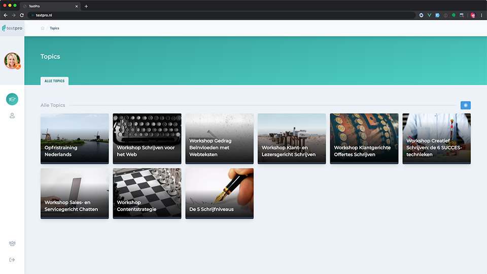 De professional die gebruikmaakt van het platform, kiest trainingsmateriaal uit dat over een specifiek schrijfonderwerp gaat: het topic.